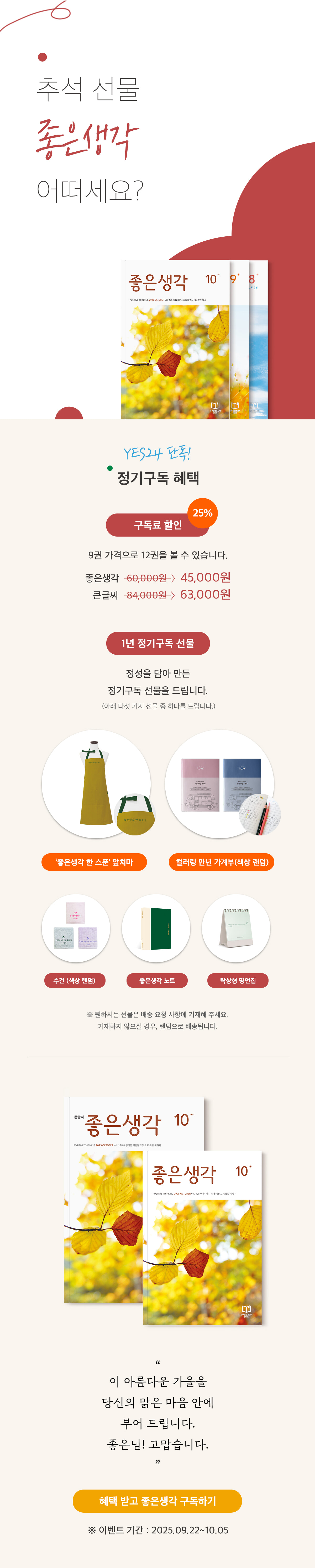 > [단독] 월간 좋은생각 추석 선물 이벤트 (2025.09.22 ~ 2025.10.05)