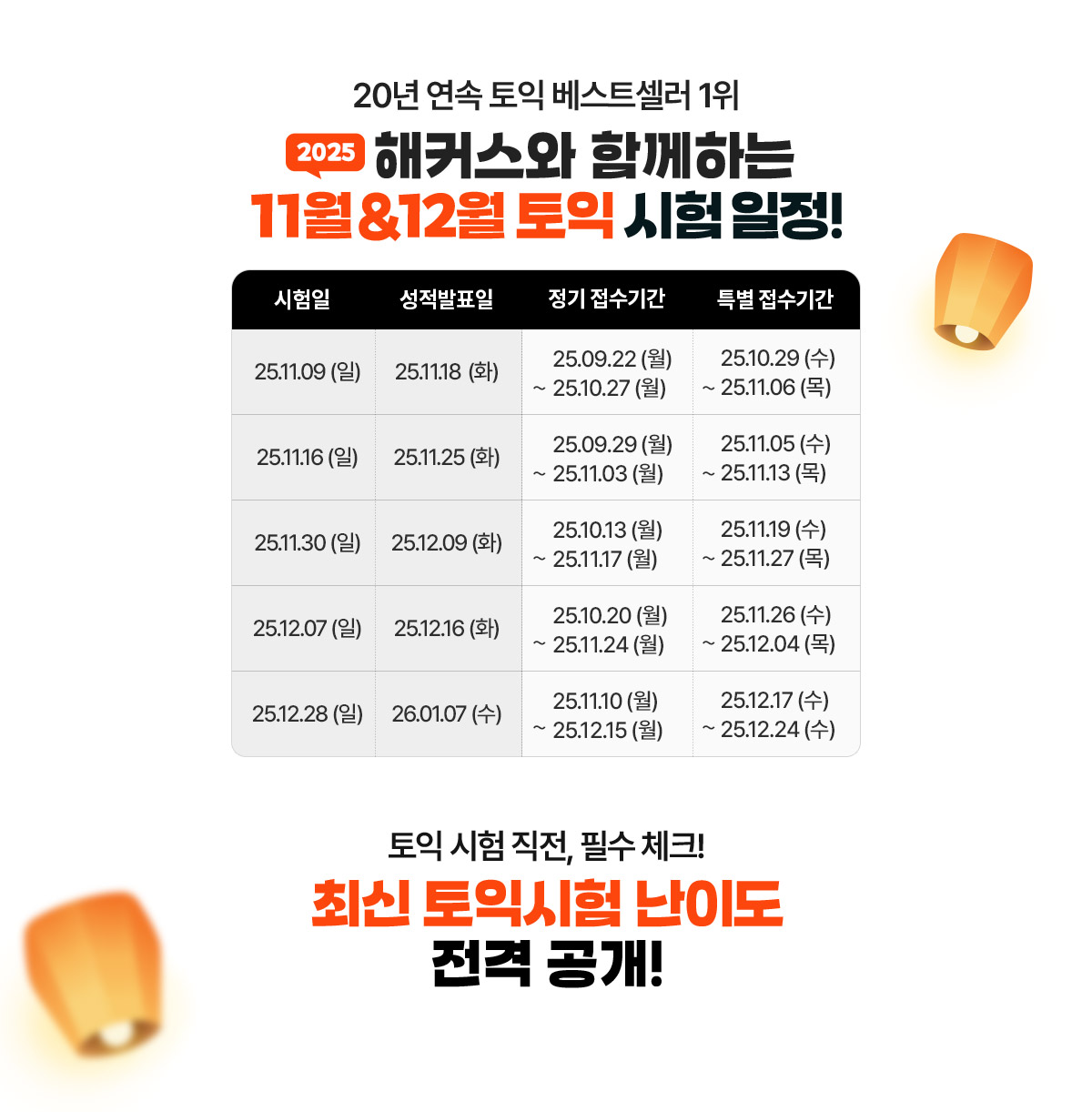 > 해커스 11월 토익 시험 대비 이벤트 (2025.10.31 ~ 2025.11.30)