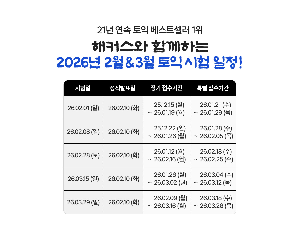 > 해커스 2월 토익 시험 대비 이벤트 (2026.01.30 ~ 2026.02.28)