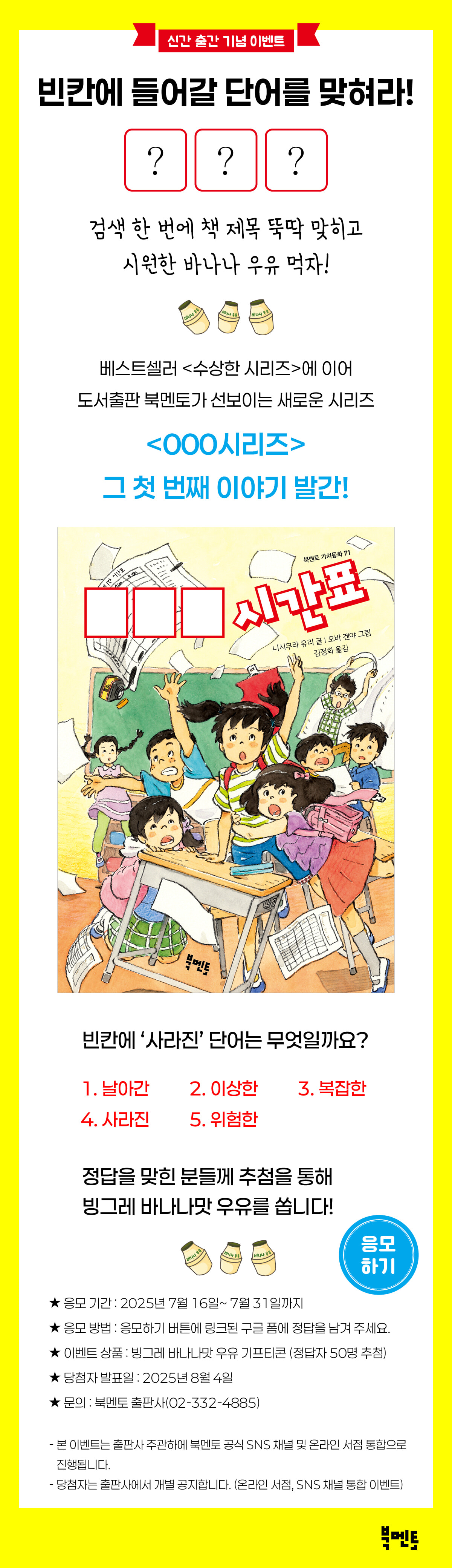 > 『사라진 시간표』 출간 전 퀴즈 이벤트 (2025.07.15 ~ 2200.12.31)