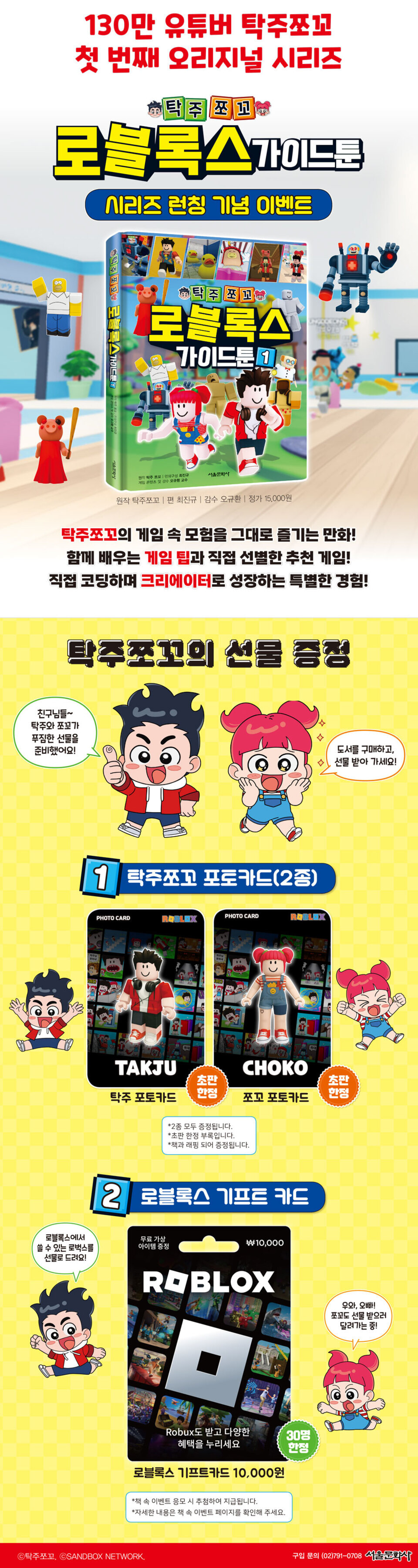 > 『탁주쪼꼬 로블록스 가이드툰 1』 - 탁주쪼꼬 포토카드 2종 (2025.09.29 ~ 2200.12.31)