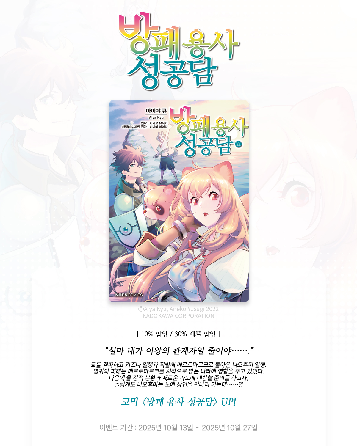 > [만화] 노엔코믹스 『방패 용사 성공담』 22권 UP! (2025.10.13 ~ 2025.10.27)