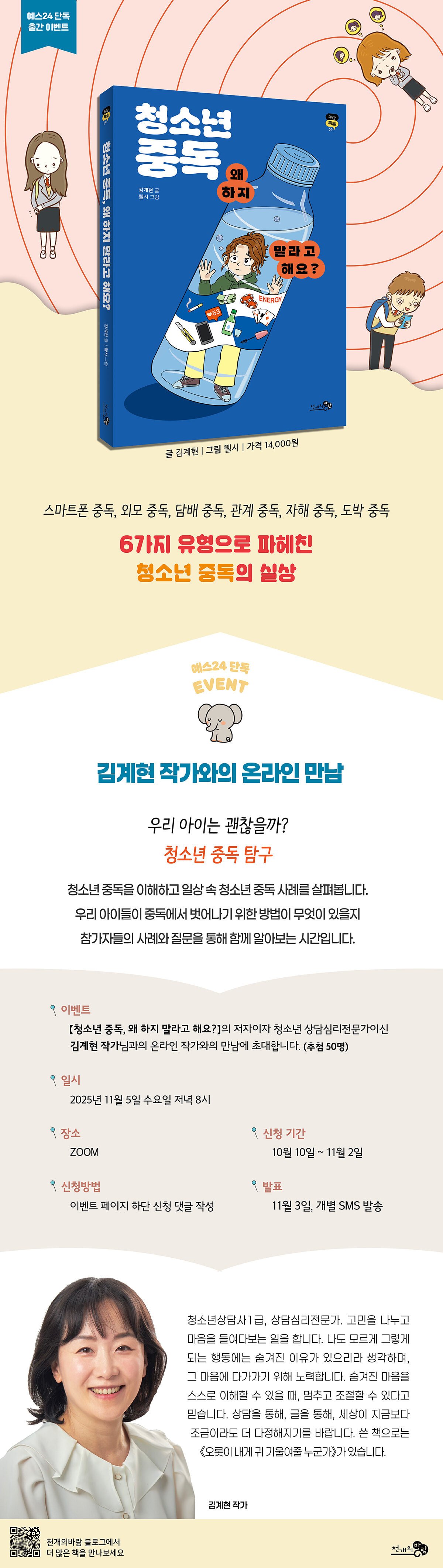 > 『청소년 중독, 왜 하지 말라고 해요?』 - 온라인 작가 만남 추첨 이벤트 (2025.10.14 ~ 2025.11.02)