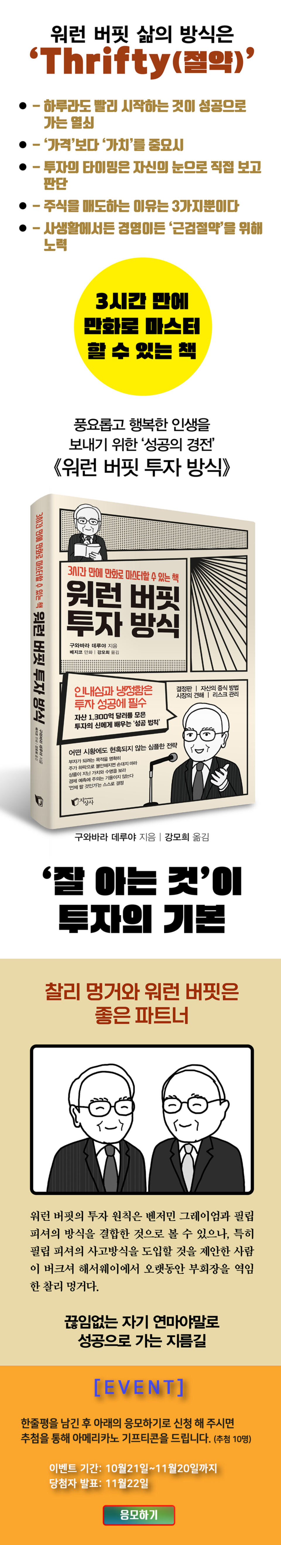 > 아메리카노 기프티콘 추첨 증정! 『워런 버핏 투자 방식』 한줄평 이벤트 (2025.10.20 ~ 2025.11.20)