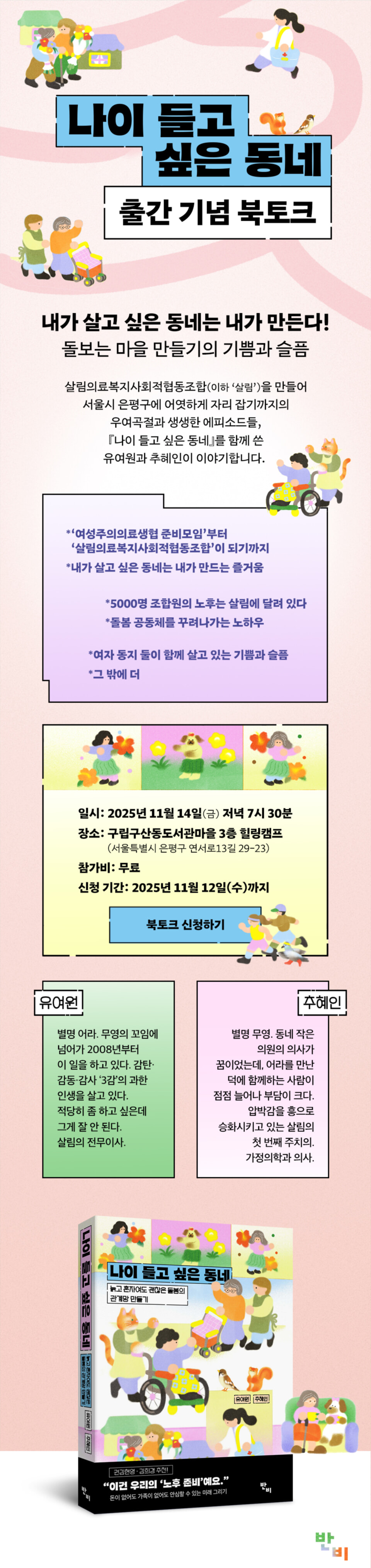> 『나이 들고 싶은 동네』 출간 기념 북토크 (2025.10.29 ~ 2025.11.12)