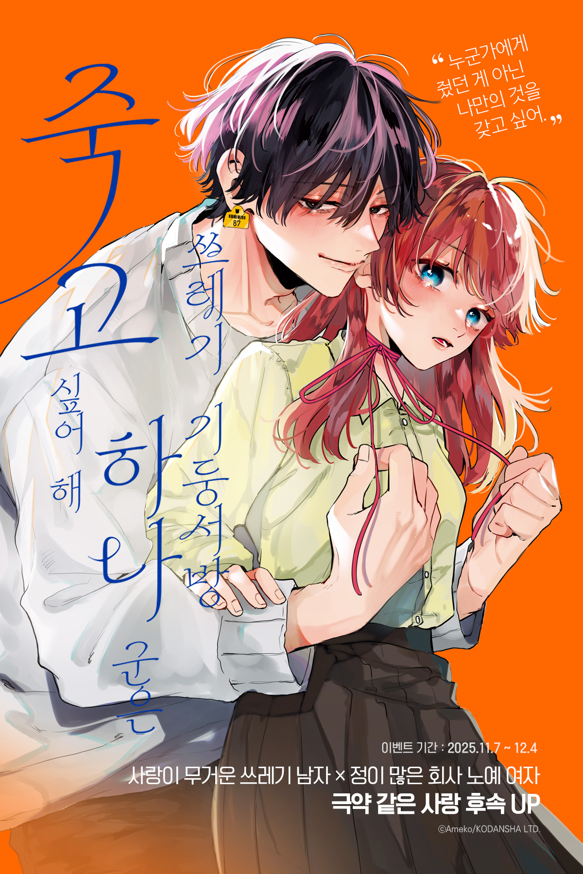 > [만화] 대원씨아이 『쓰레기 기둥서방 하나 군은 죽고 싶어 해』 2권 UP! (2025.11.07 ~ 2025.12.04)