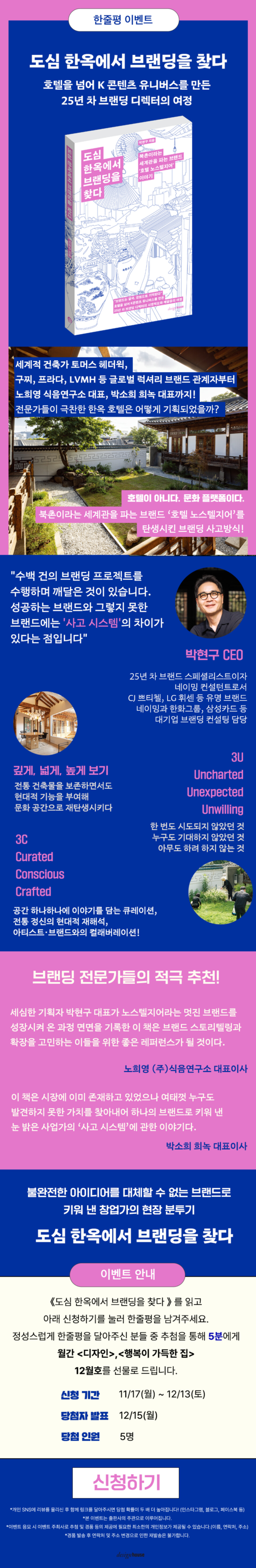 > 『도심 한옥에서 브랜딩을 찾다』 한줄평 이벤트 (2025.11.17 ~ 2025.12.13)