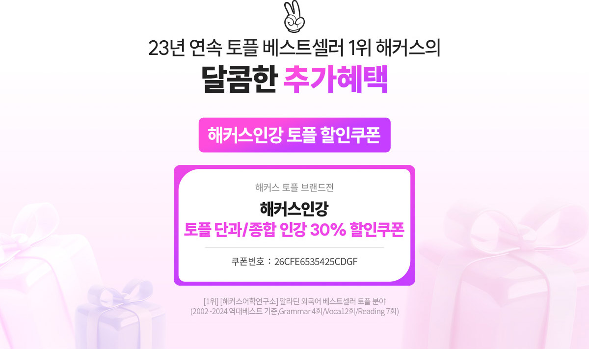 > 해커스 토플 브랜드전 (2025.11.17 ~ 2200.12.31)
