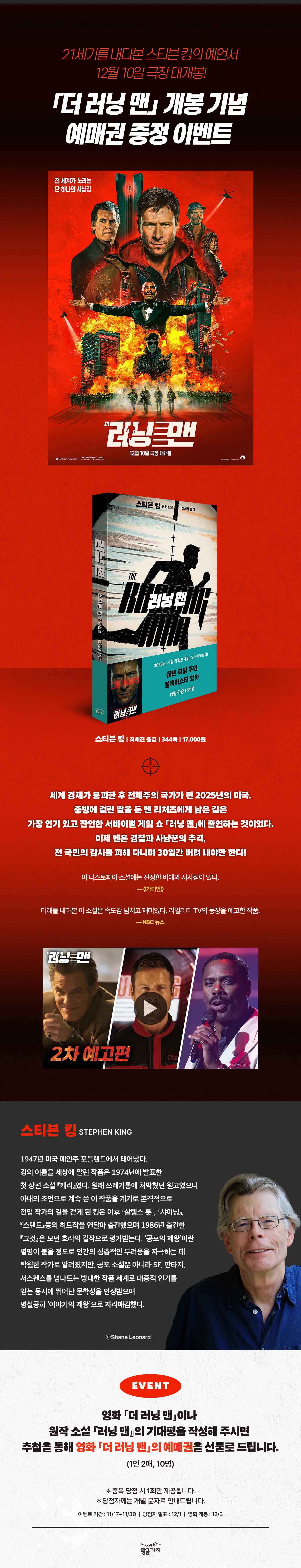 > 영화 <더 러닝 맨> & 원작 소설 『러닝 맨』 의 기대평 이벤트 - 예매권 추첨 (2025.11.19 ~ 2025.11.30)