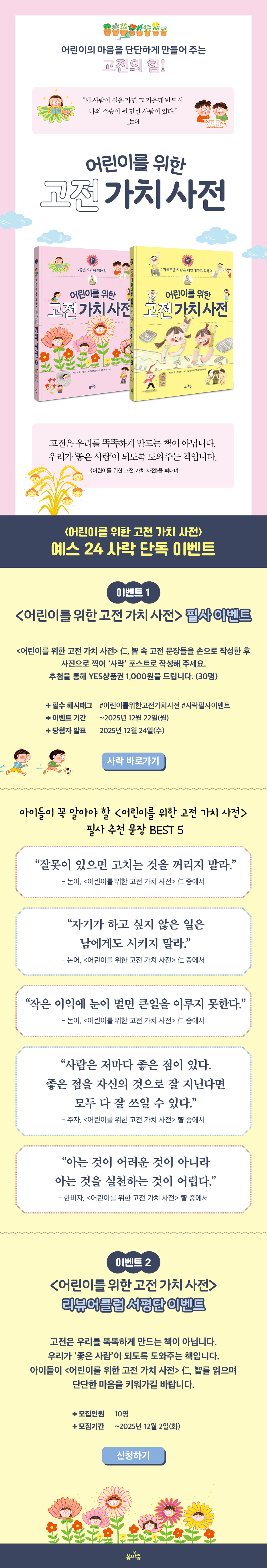 > [사락] 『어린이를 위한 고전 가치 사전』필사 & 서평단 모집 (2025.11.24 ~ 2025.12.22)