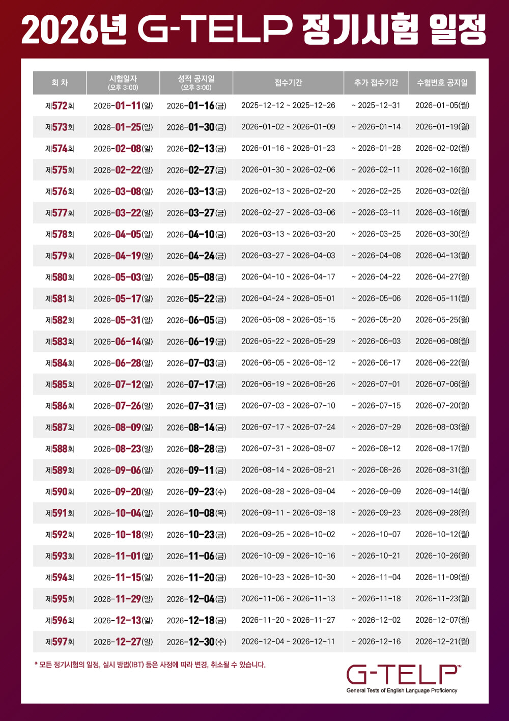> 2026 지텔프 정기시험 일정 (2025.11.24 ~ 2200.12.31)