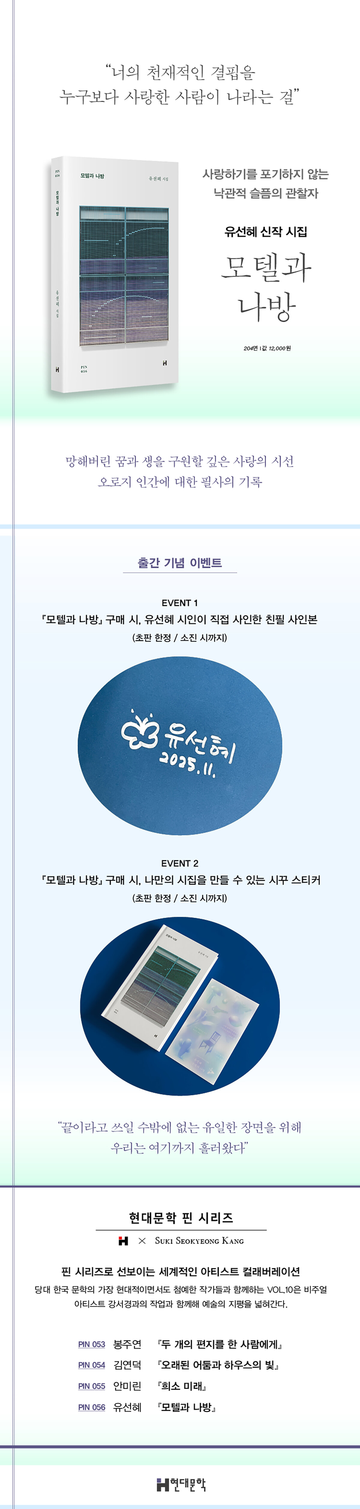 > 『모텔과 나방』 출간 이벤트 - 초판 한정 시꾸 스티커 (2025.11.26 ~ 2026.01.31)