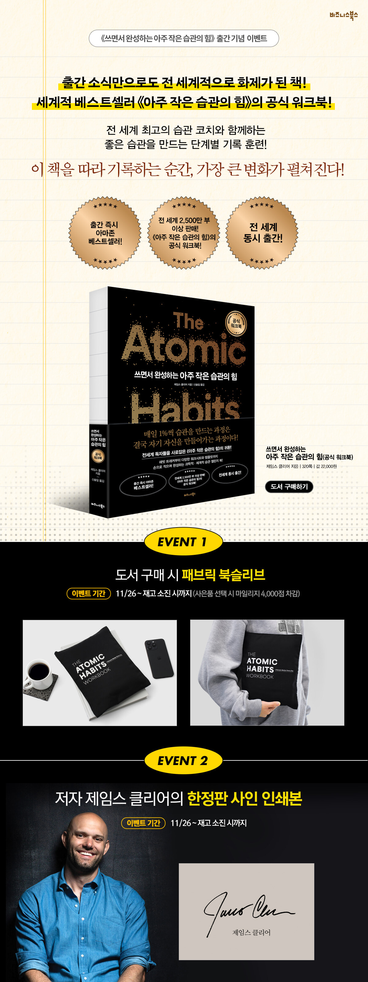 > 『쓰면서 완성하는 아주 작은 습관의 힘 (공식 워크북)』 - 저자 제임스 클리어의 한정판 사인 인쇄본 (2025.11.26 ~ 2026.01.31)
