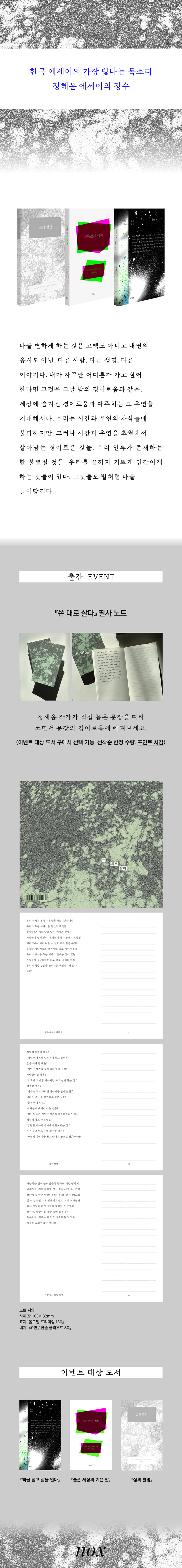 > 정혜윤 에세이 기획전 : 쓴 대로 살다 (2025.12.01 ~ 2026.01.01)