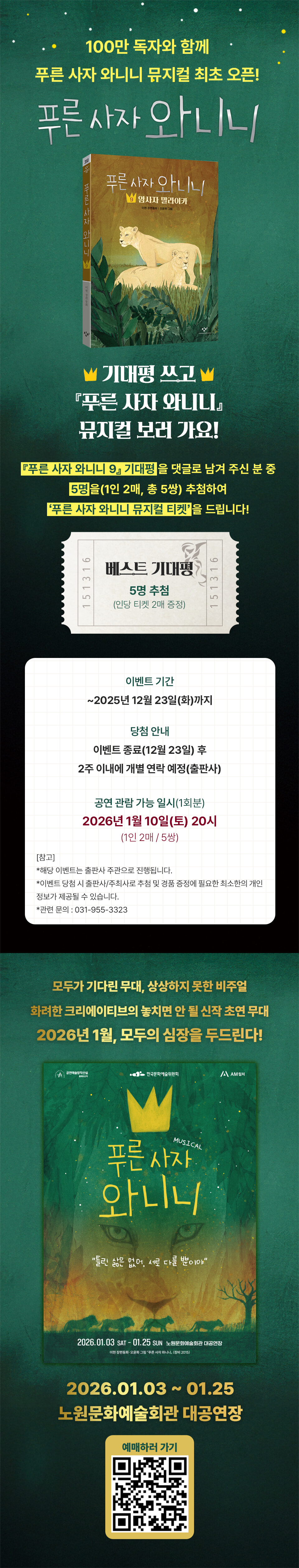 > 『푸른 사자 와니니 9』 - 푸른 사자 와니니 뮤지컬 티켓 (2025.12.02 ~ 2025.12.23)