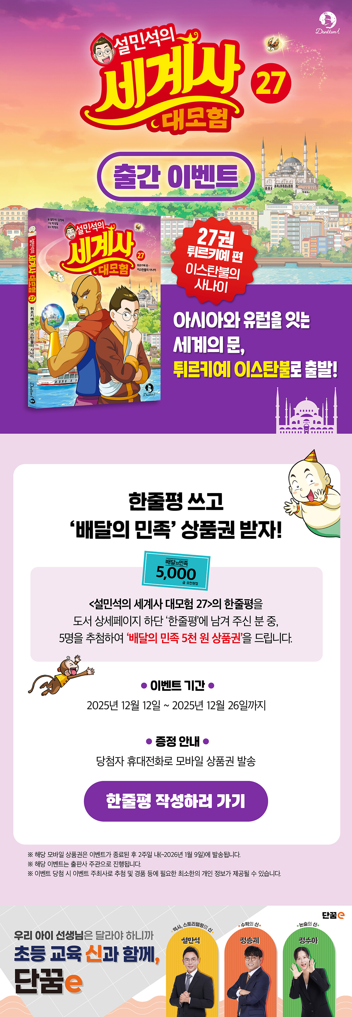> 『설민석의 세계사 대모험 27』 출간 이벤트 - 배민 상품권 (2025.12.12 ~ 2025.12.26)
