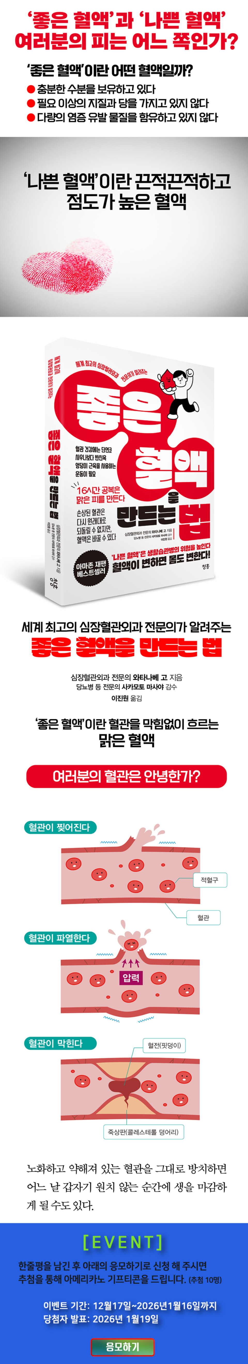 > 아메리카노 기프티콘 추첨 증정! 『좋은 혈액을 만드는 법』 한줄평 이벤트 (2025.12.17 ~ 2026.01.16)
