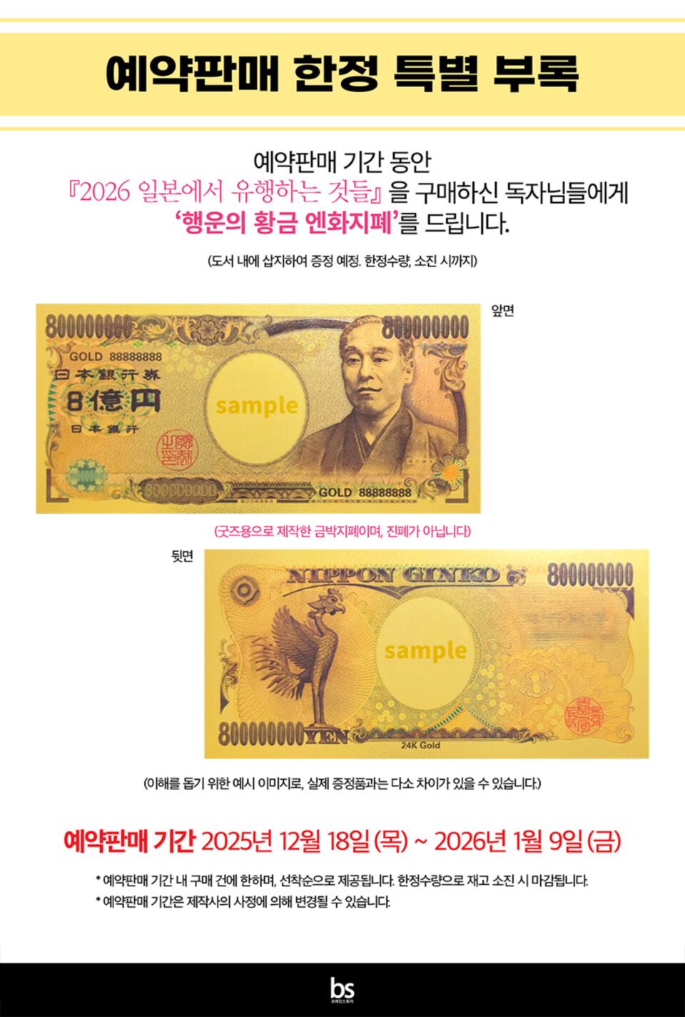 > 『2026 일본에서 유행하는 것들』 - 행운의 황금 엔화지폐 (2025.12.18 ~ 2026.01.09)
