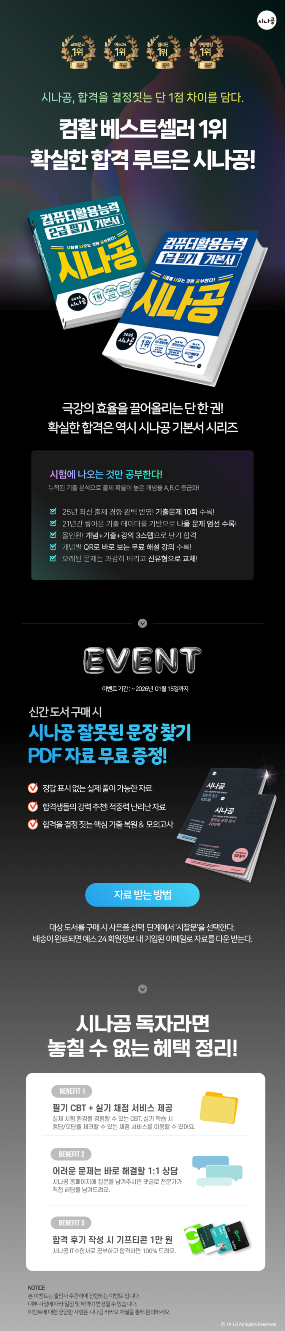 > 『한 권으로 끝내는 시나공 컴활』 출간 기념 이벤트 - 시잘문 PDF 파일 다운로드 (2025.12.19 ~ 2026.01.30)