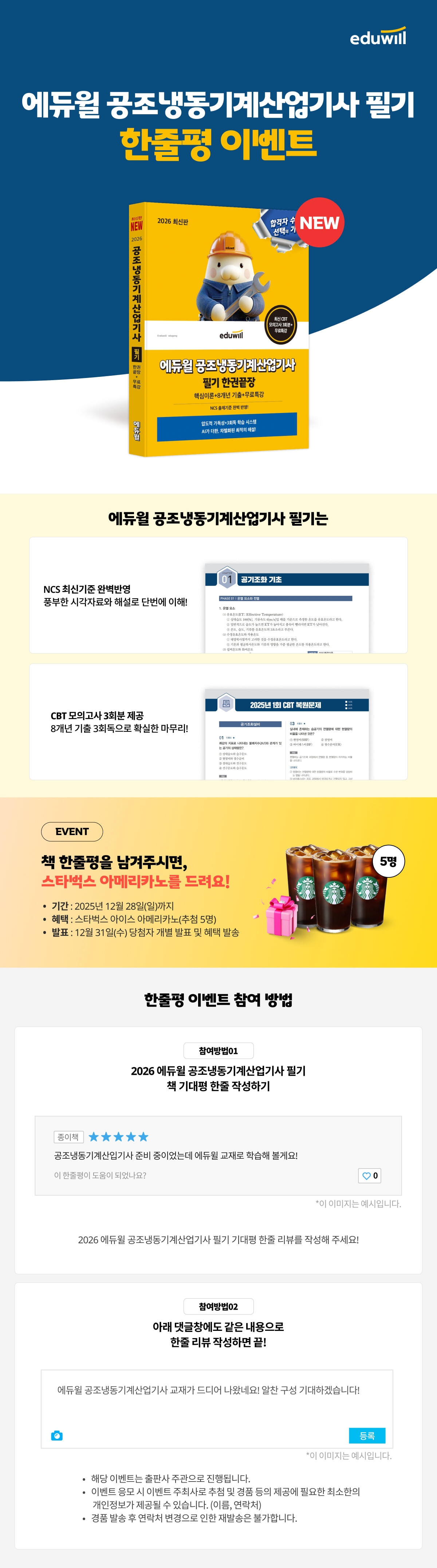 > 2026 에듀윌 공조냉동기계산업기사 필기 한줄평 이벤트 (2025.12.22 ~ 2025.12.28)