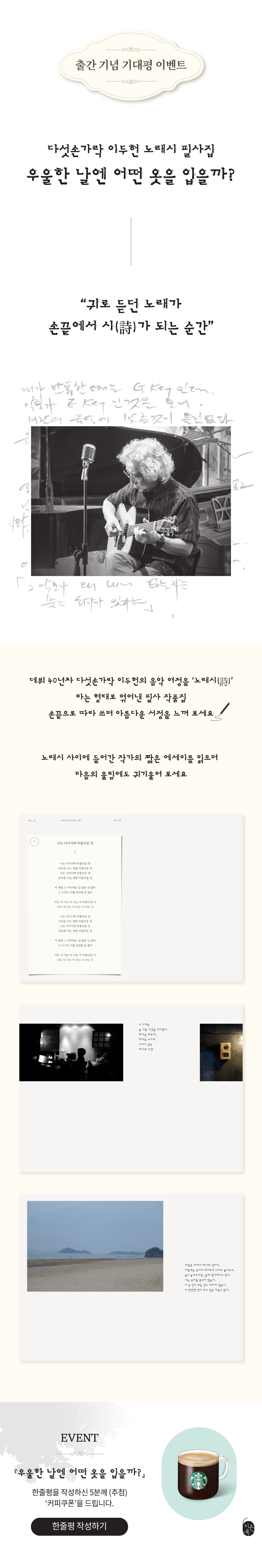 > 커피쿠폰 추첨! 『우울한 날엔 어떤 옷을 입을까?』 한줄평 이벤트 (2025.12.23 ~ 2026.01.31)