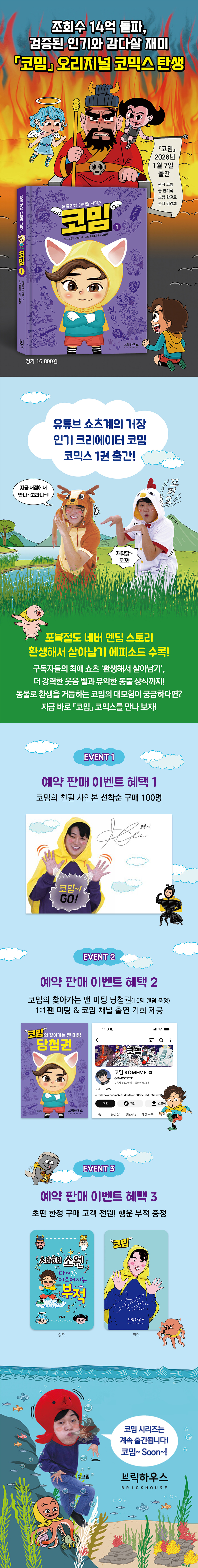 > 『코밈 1 : 동물 환생 대탐험 코믹스』 - 친필사인본(선착순) + 팬미팅 당첨권(랜덤)/행운부적 (책과랩핑) (2025.12.24 ~ 2200.12.31)
