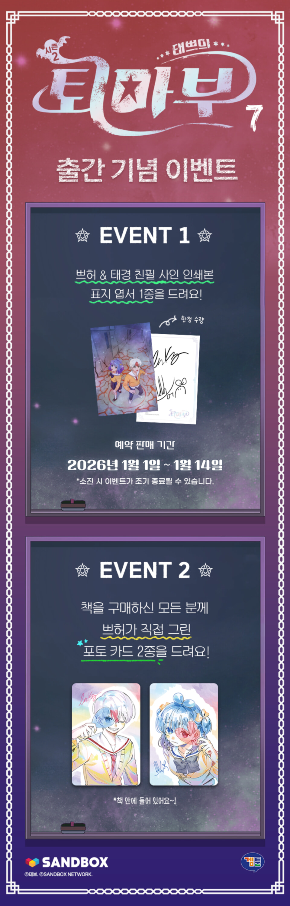 > 『태쁘의 퇴마부 시즌 2 7』 - 쁘허가 그린 포토 카드 (책과 랩핑) (2025.12.31 ~ 2200.12.31)