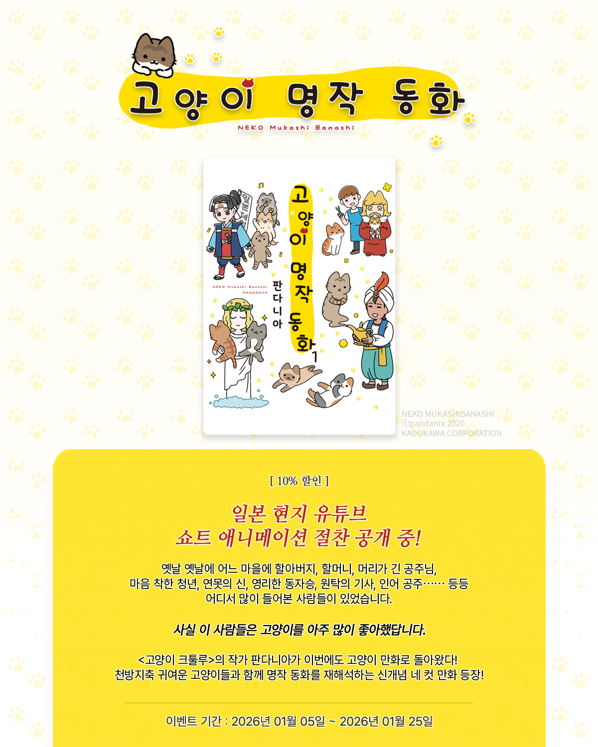 > [만화] 픽시하우스 『고양이 명작 동화』 1권 출간! (2026.01.05 ~ 2026.01.25)