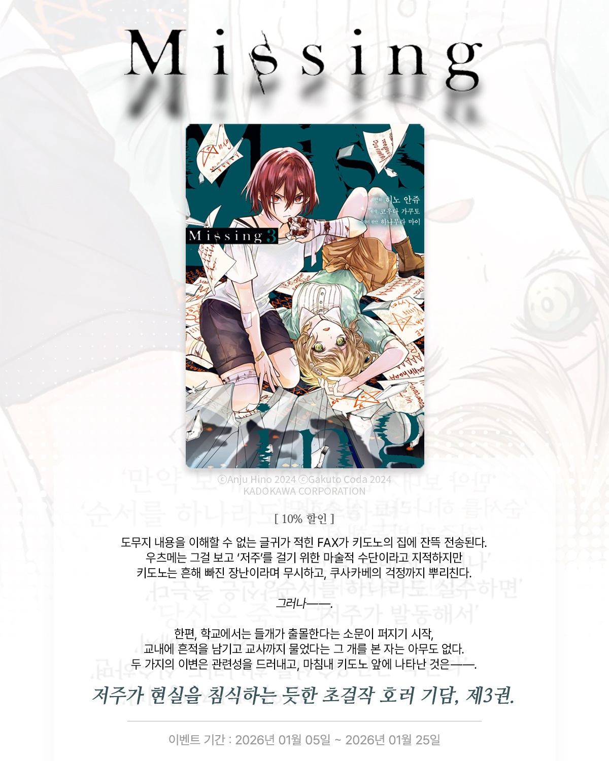 > [만화] 노엔코믹스 『MISSING』 3권 UP! (2026.01.05 ~ 2026.01.25)
