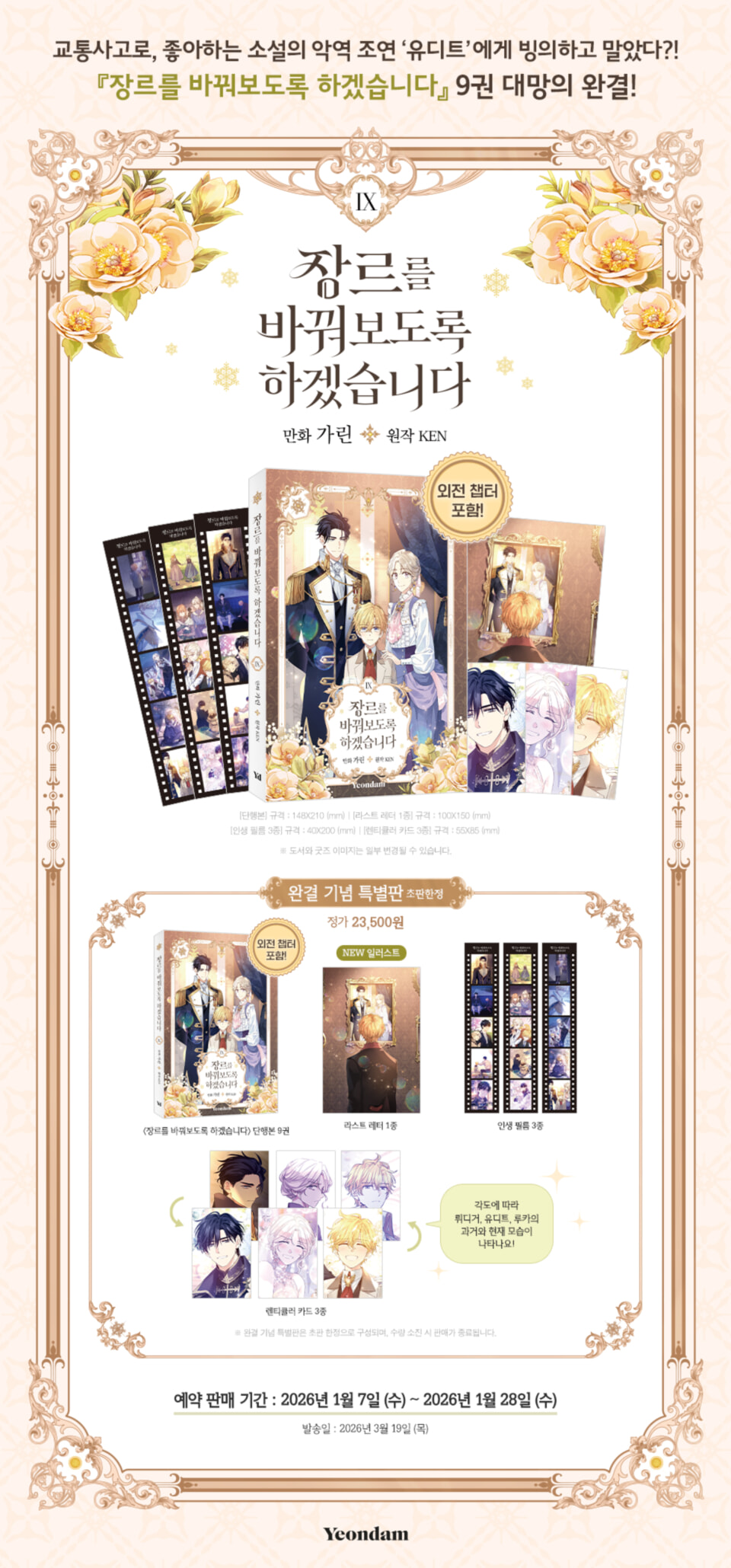 > 『만화 장르를 바꿔보도록 하겠습니다 9 특별판』 특별판 초판한정 부록 (2026.01.05 ~ 2026.01.28)