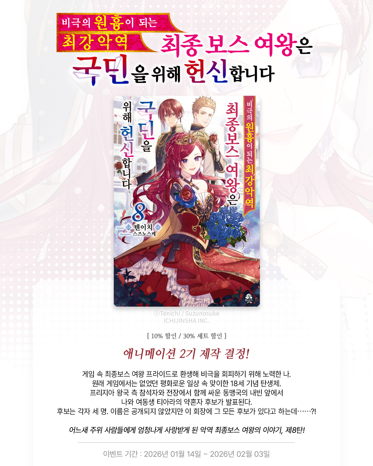 > [라노벨] 로지 『비극이 원흉이 되는 최강악역 최종보스~』 8권 UP! (2026.01.14 ~ 2026.02.03)