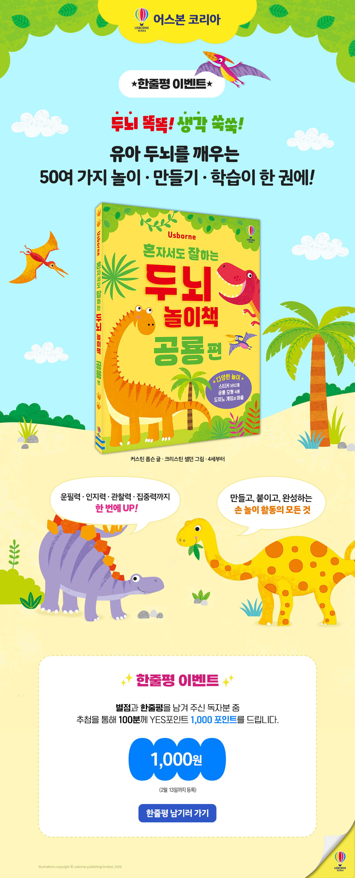 > 『혼자서도 잘하는 두뇌 놀이책 : 공룡편』 - 예스포인트 1000p (2026.01.16 ~ 2026.02.13)