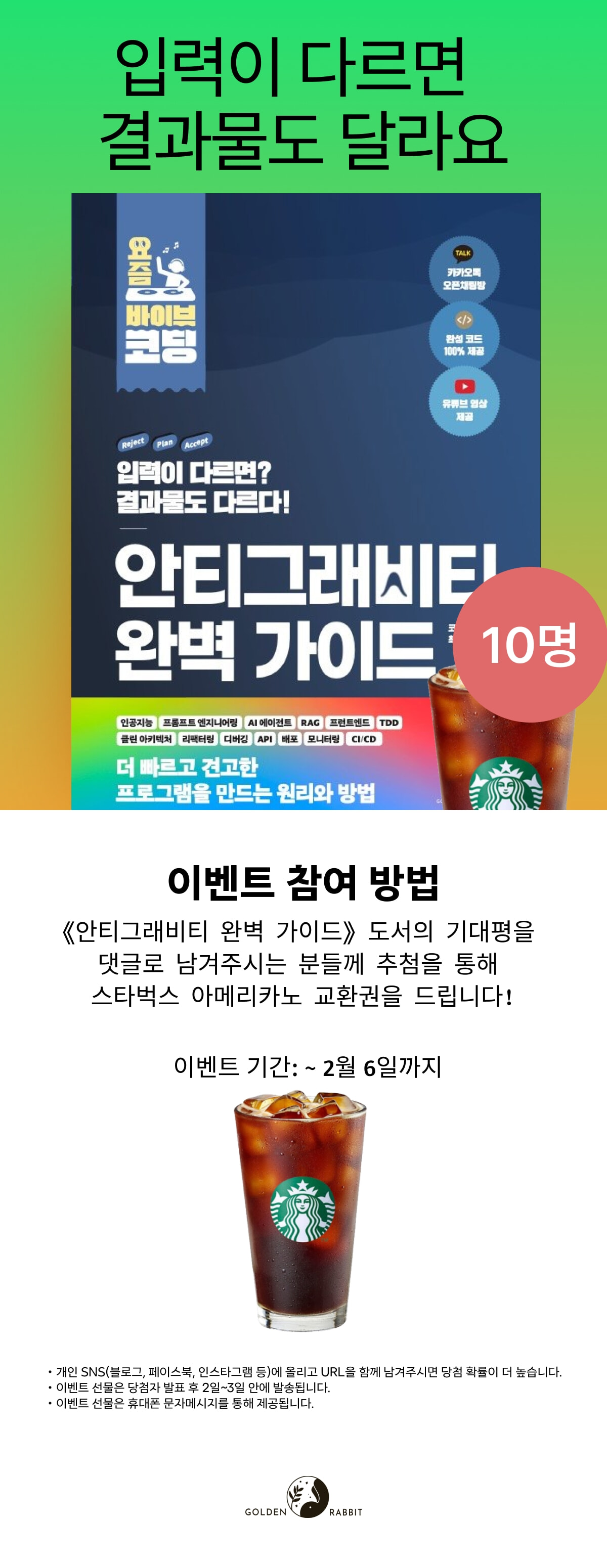 > 『요즘 바이브 코딩 안티그래비티 완벽 가이드』 출간 기념 기대평 이벤트 - 커피 기프티콘 (2026.01.20 ~ 2026.02.06)