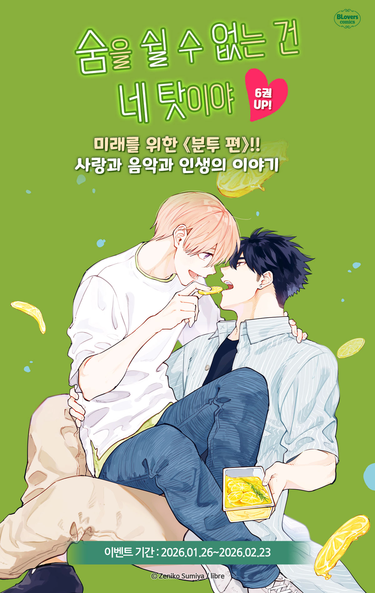 > [BL만화] BLovers 『숨을 쉴 수 없는 건 네 탓이야』 6권 UP! (2026.01.26 ~ 2026.02.23)