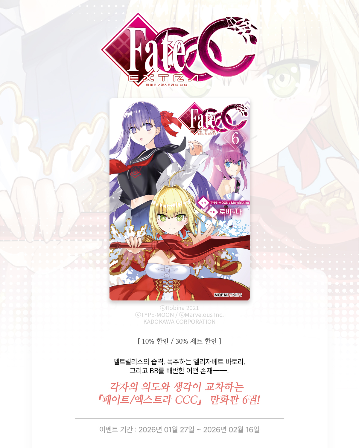 > [만화] 노엔코믹스 『페이트 / 엑스트라 CCC』 6권 UP! (2026.01.27 ~ 2026.02.16)