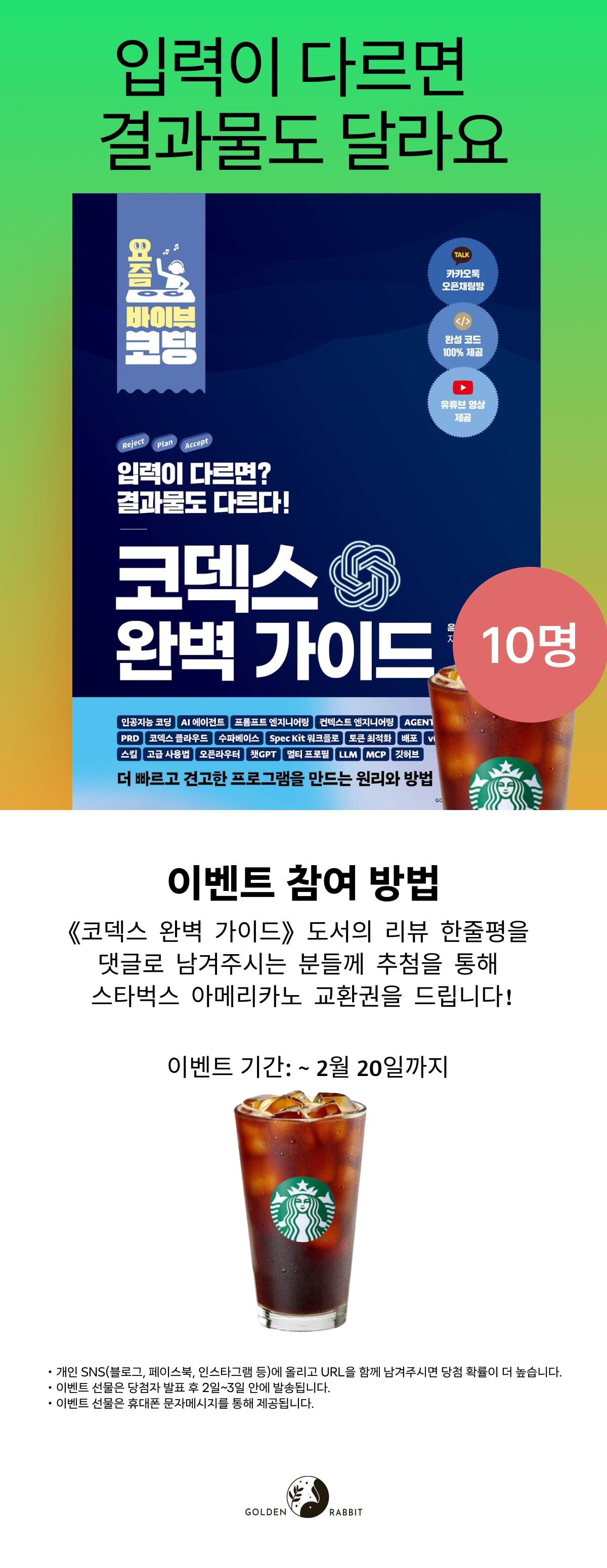 > 『요즘 바이브 코딩 코덱스 완벽 가이드』 리뷰/한줄평 - 커피 기프티콘 증정 (2026.01.27 ~ 2026.02.20)