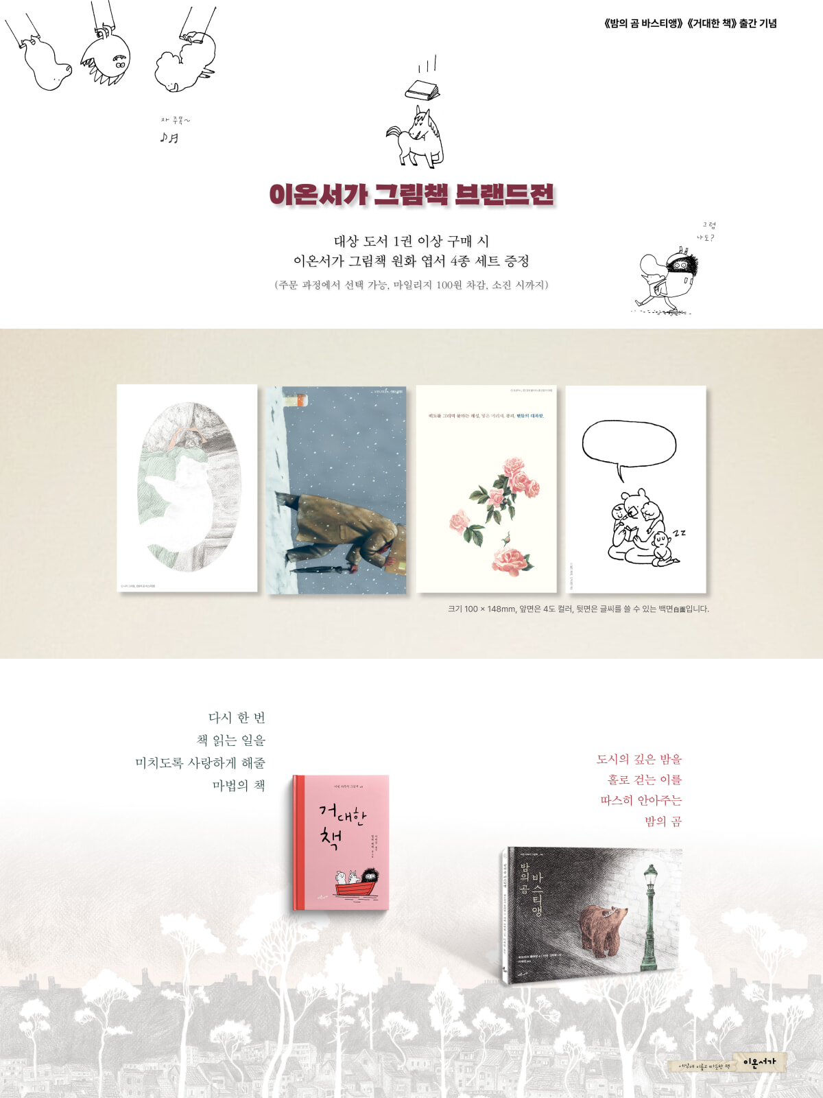> 『밤의 곰 바스티앵』 - 일러스트 원화 엽서 4종 세트 (2026.01.28 ~ 2200.12.31)