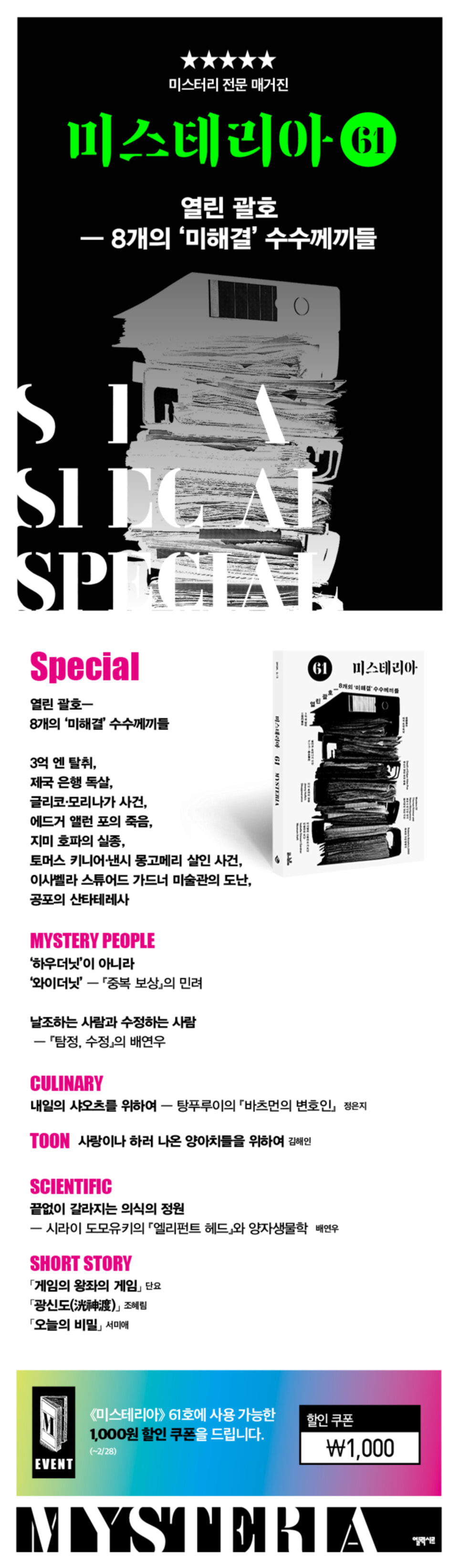 > 『미스테리아 : 61호 [2026]』 - 할인 쿠폰 (2026.01.30 ~ 2026.02.28)