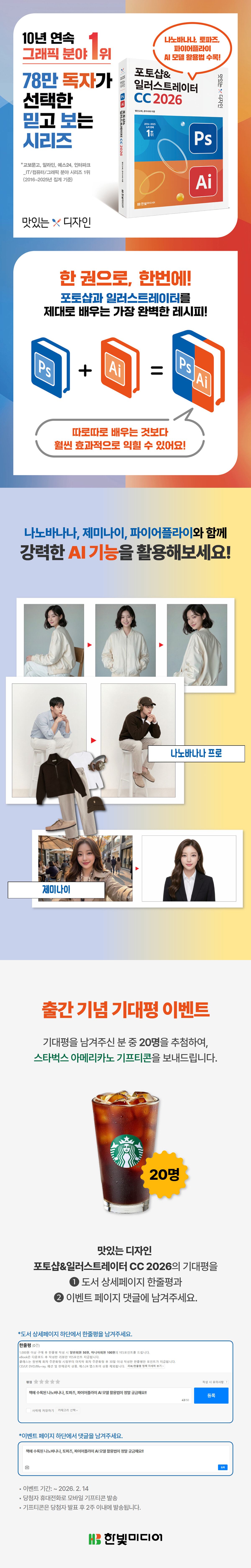 > 『맛있는 디자인 포토샵&일러스트레이터 CC 2026』 출간 기념 기대평 - 커피 기프티콘 (2026.01.30 ~ 2026.02.14)