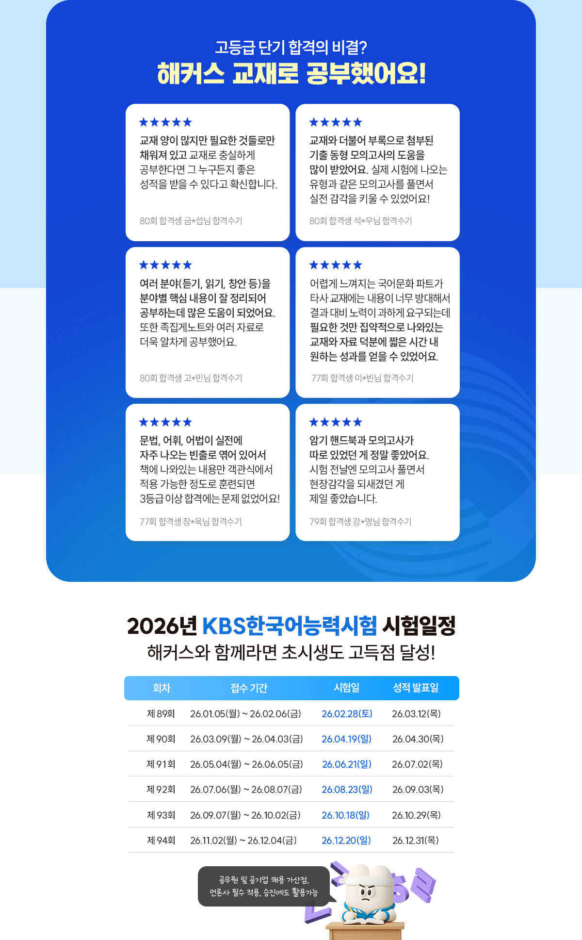 > 해커스 KBS한국어능력시험 고등급 달성은 해커스! (2026.02.05 ~ 2200.12.31)