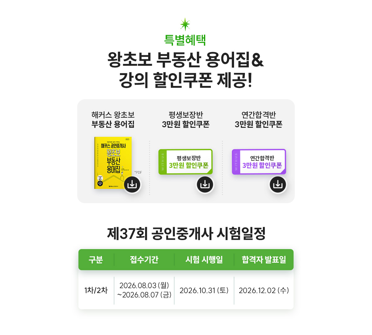 해커스 왕초보 부동산 용어집 평생보장반 3만원 할인쿠폰 연간합격반 3만원 할인쿠폰
