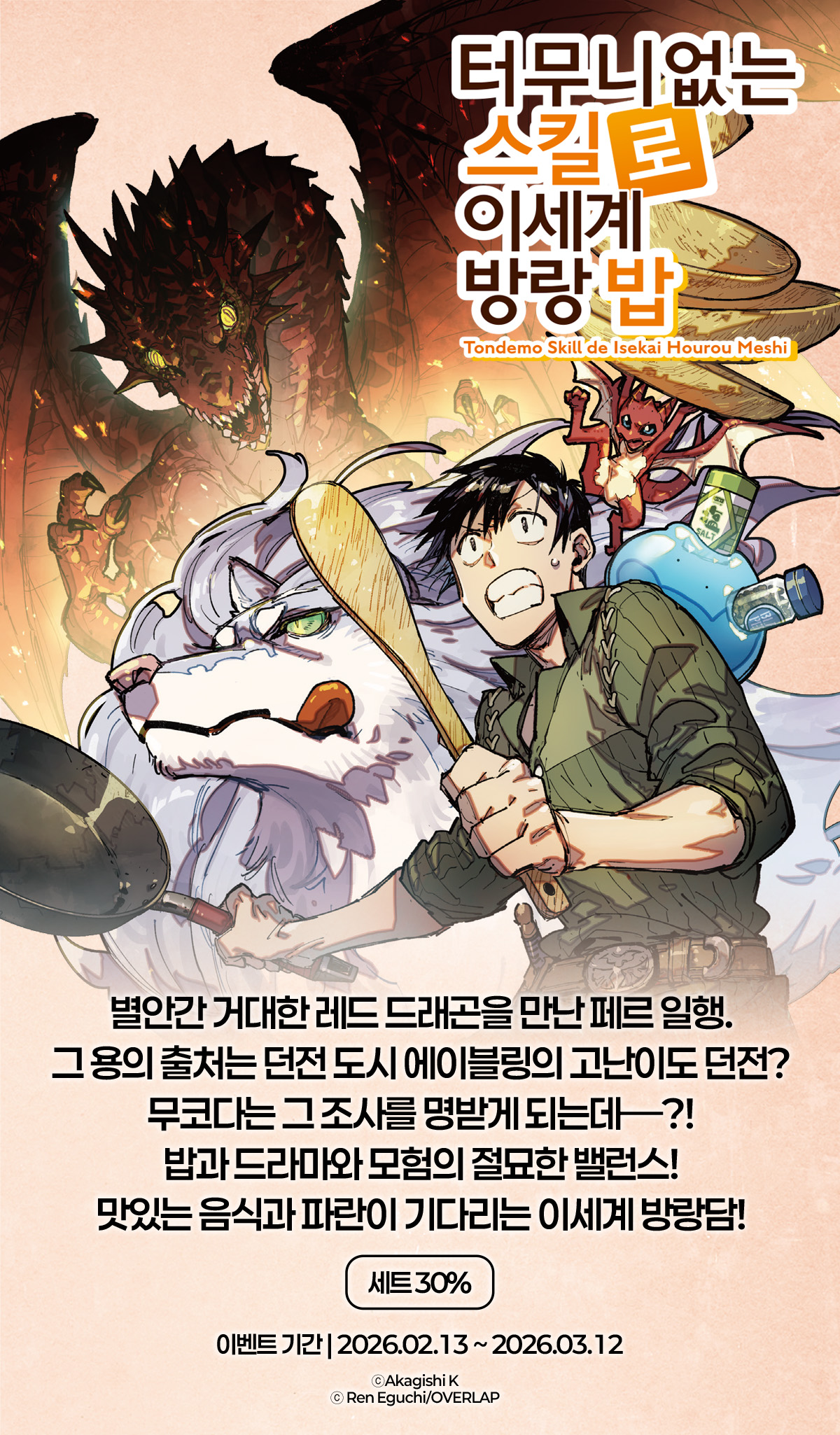 > [만화] S코믹스 『터무니없는 스킬로 이세계 방랑 밥』 11권 UP! (2026.02.13 ~ 2026.03.12)