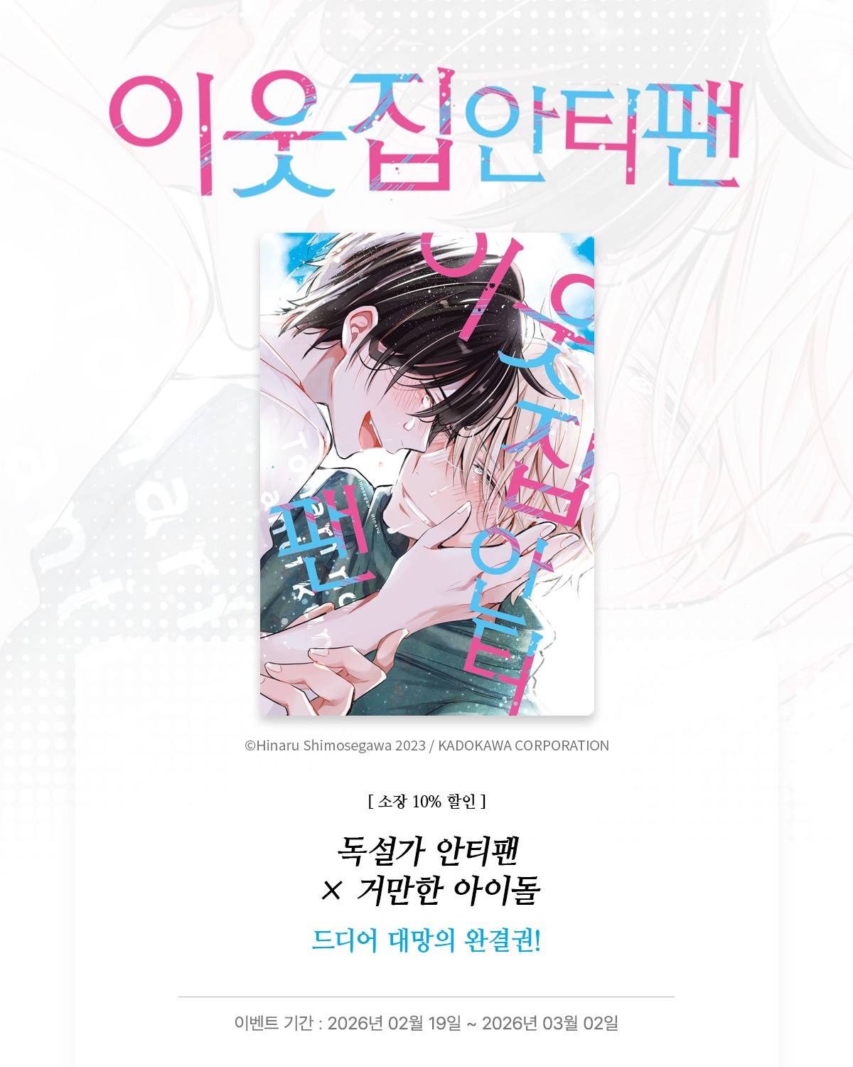 > [BL만화] 리체코믹스 『이웃집 안티팬』 3권 완결! (2026.02.19 ~ 2026.03.02)