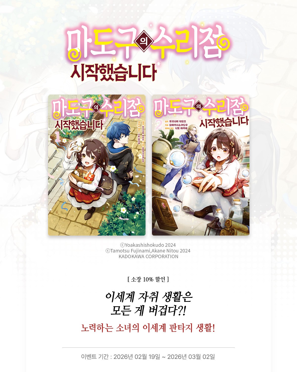 > [만화] 루체코믹스 『마도구의 수리점 시작했습니다』 1~2권 오픈! (2026.02.19 ~ 2026.03.02)