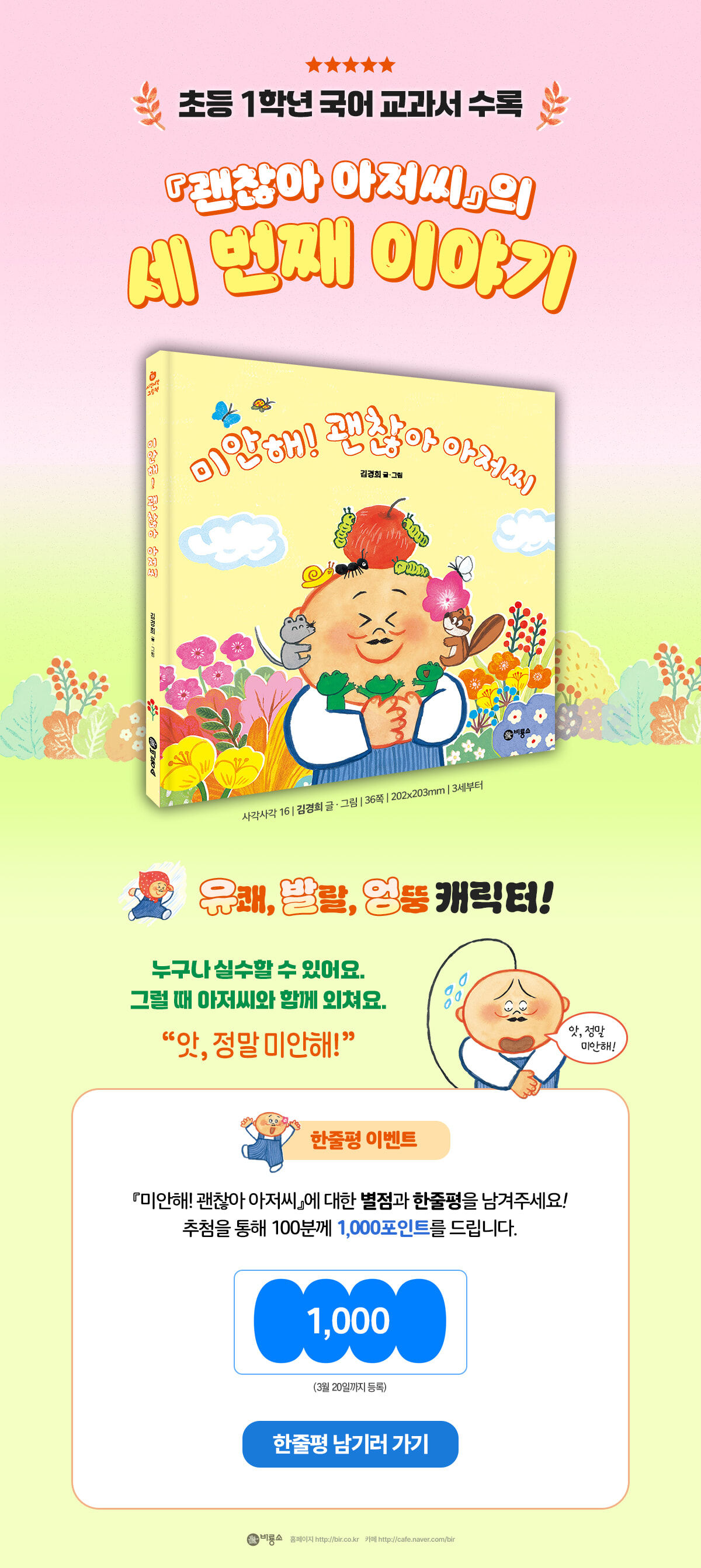 > 『미안해! 괜찮아 아저씨』 한줄평 이벤트 - 예스포인트 1000p (2026.02.20 ~ 2026.03.20)