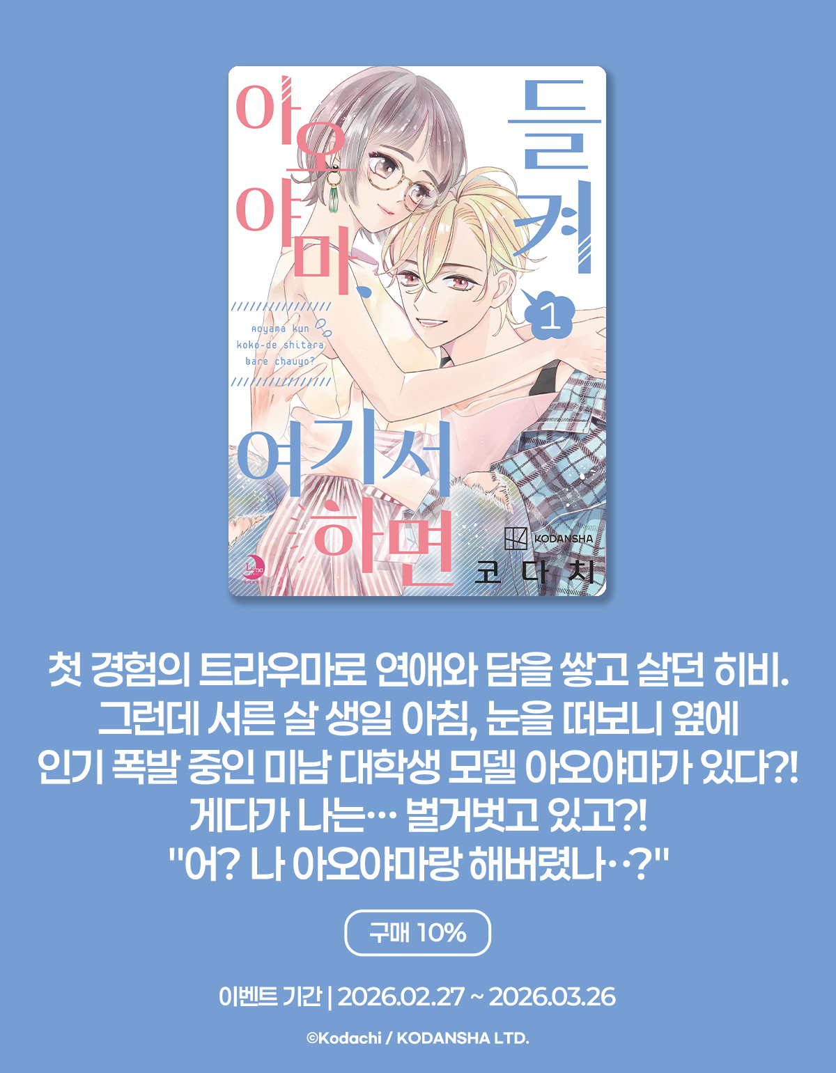 > [만화] 루나코믹스 『아오야마, 여기서 하면 들켜』 오픈! (2026.02.27 ~ 2026.03.26)