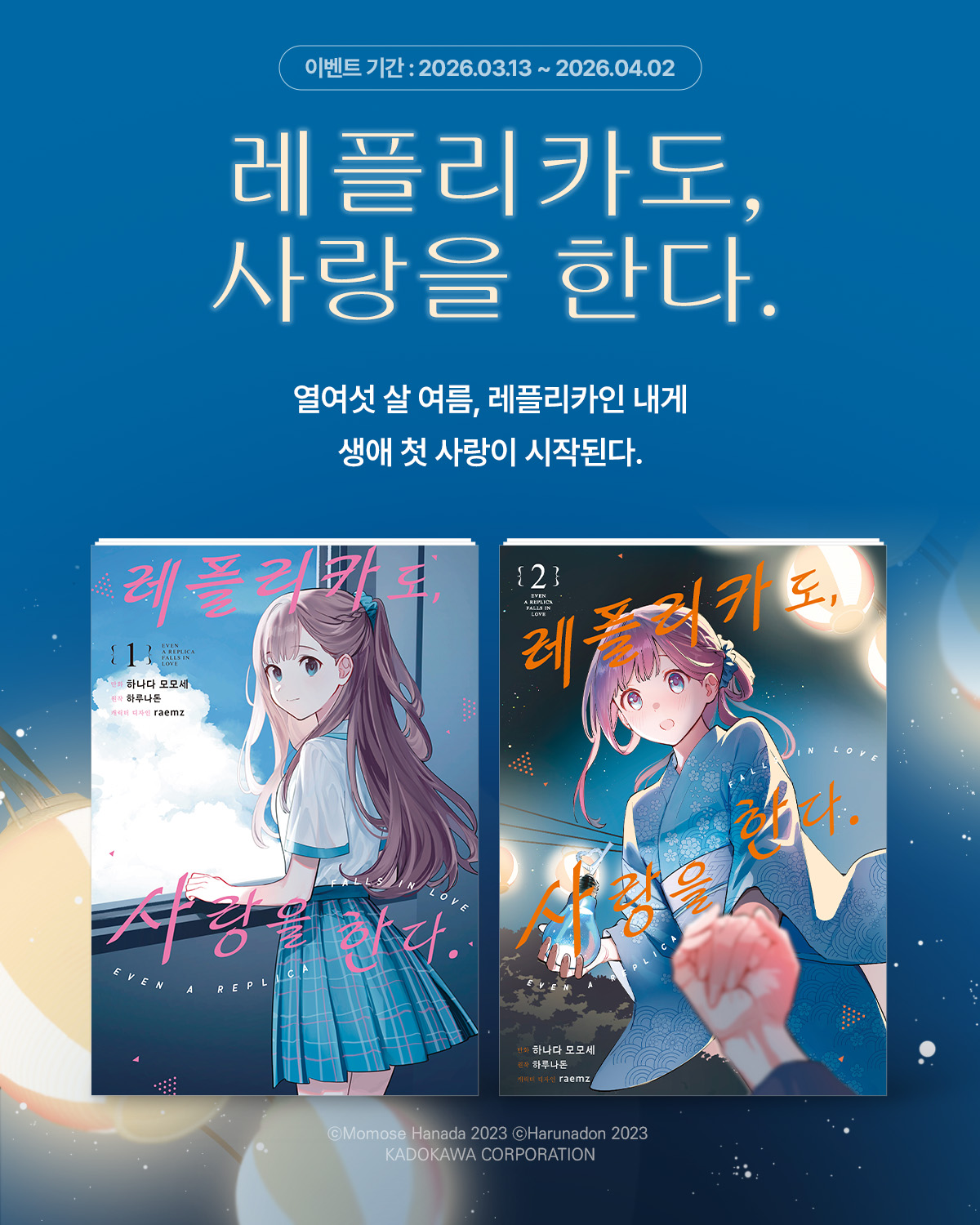 > [만화] 노엔코믹스 『레플리카도, 사랑을 한다.』 1~2권 오픈! (2026.03.13 ~ 2026.04.02)