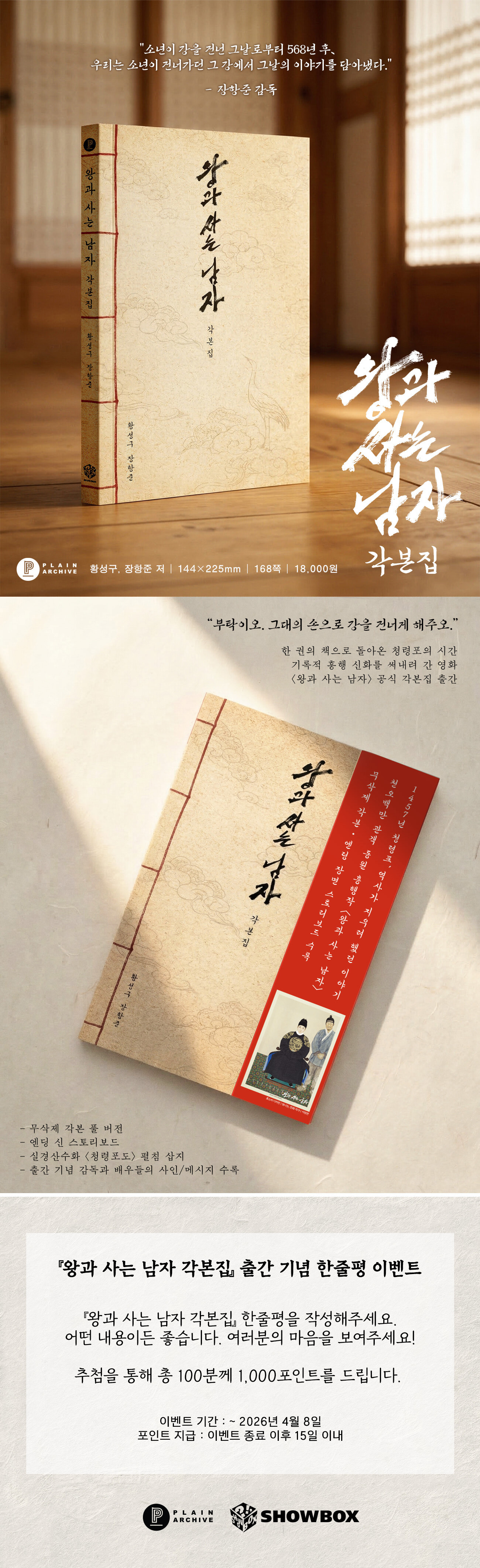 > 『왕과 사는 남자 각본집』 출간 기념 한줄평 이벤트 (2026.03.23 ~ 2026.04.08)