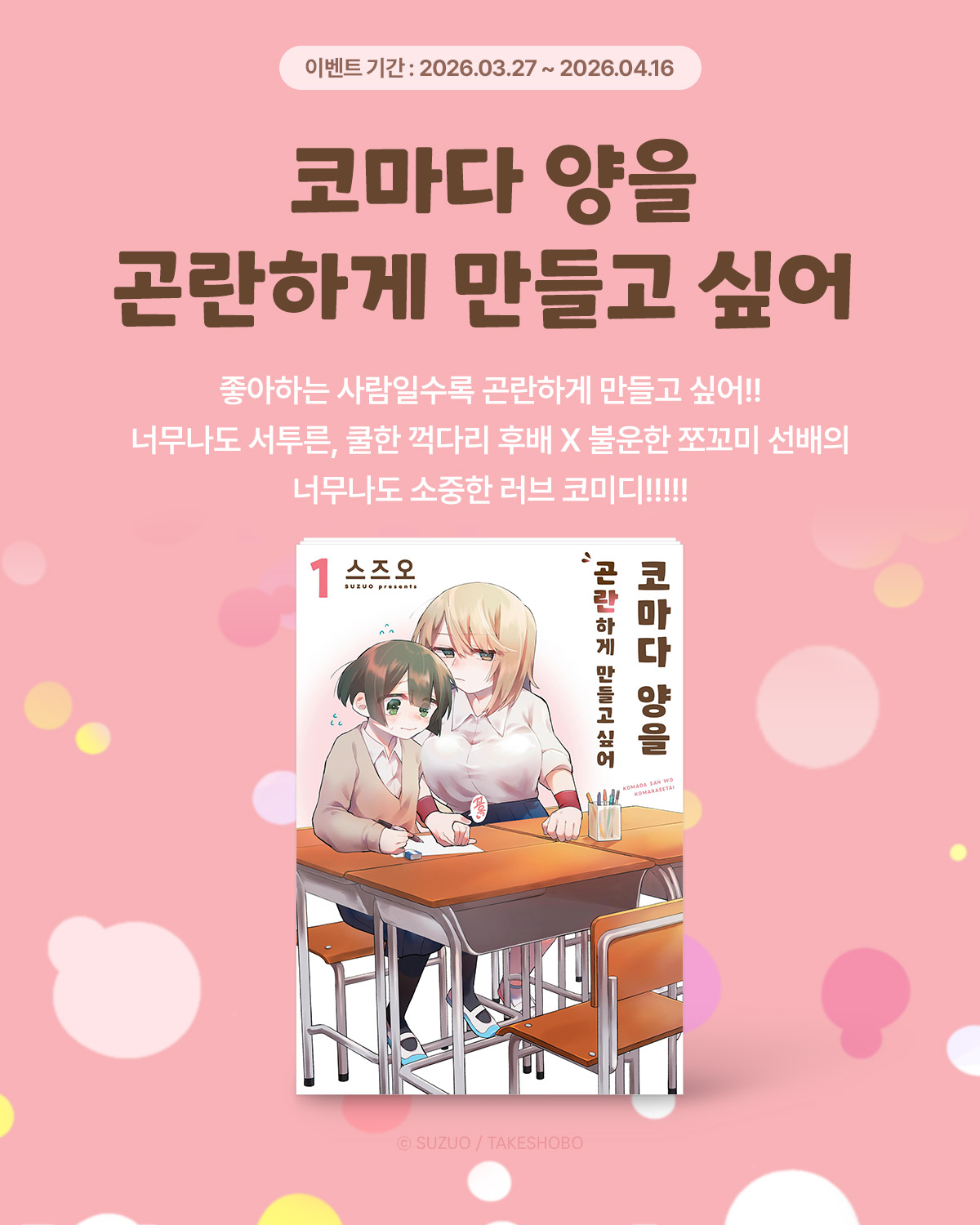 > [만화] 노엔코믹스 『코마다 양을 곤란하게 만들고 싶어』 1권 오픈! (2026.03.27 ~ 2026.04.16)