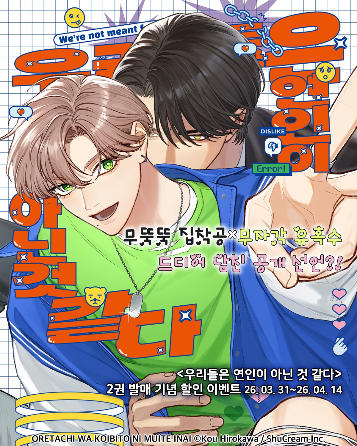 > [BL만화] 인디고 『우리들은 연인이 아닌 것 같다』 2권 UP! (2026.03.31 ~ 2026.04.14)